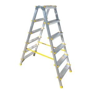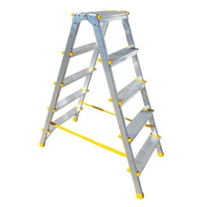 Hliníkový rebrík dvoják, klasický A tvar. 2 priečky na oboch stranách.