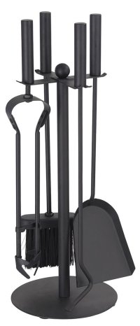 výška: 67 cm farba: čierna materiál: drevo/oceľ sada obsahuje lopatku, pohrabáč a metličku Krbové náradie so stojanom je praktický dekoratívny doplnok ku krbovým kachliam.