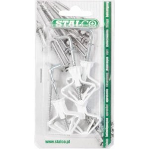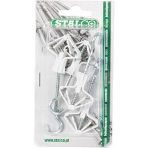 Materiál: polyamidová hmoždinka, galvanicky pozinkovaný oceľový vrut s pravouhlým háčikom Účel: na montáž ľahkých prvkov do sadrokartónových dosiek s hrúbkou do 12,50 mm