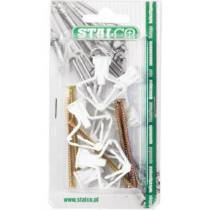 Materiál: polyamidová hmoždinka, galvanicky pozinkovaný oceľový vrut Účel: na montáž ľahkých prvkov do sadrokartónových dosiek s hrúbkou do 12,50 mm