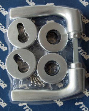 Kovanie MONET-Rozeta F1, vložka, STR elox. rozmery: - priemer rozety: 50 mm - kľučka: 107 mm prevedenie: kľučka - kľučka na cylindrickú vložku povrch: strieborný eloxovaný hliník Rozetové kovanie pre interiérové …