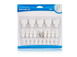 Súprava plastových samolepiacich háčikov s kovovým závesom.