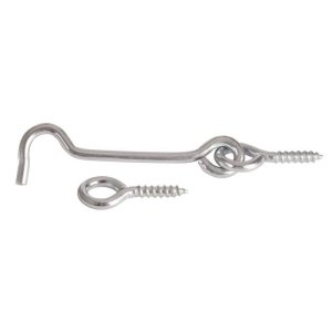 Háčik s očkom na zaskrutkovanie 120 mm Zn ZHK120. rozmery: 120 mm matriál: pozinkovaná oceľ Háčik a očko na zaskrutkovanie do dreva sa používa aj na zaisťovanie rôznych dvierok, vrátok a okeníc.