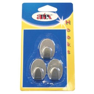 Háčik oválny, malý, samolepiaci, nerez (8 ks). rozmery: 1,2 x 1,5 x 2,6 cm rozmery balenia: 1,3 x 8 x 16,5 cm materiál: nerez balenie: 8 ks Samolepiace háčiky z nerezovej ocele.