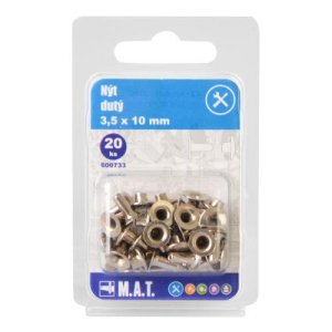rozmery (pr. x D): 3,5 x 10 mm 20 ks Nit dutý 3,5 x 10 mm ponúka mnohostranné a variabilné využitie pre náročné spojenia pri rôznych konštrukčných jednotkách.