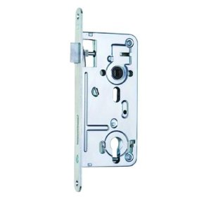 Zadlabací zámok 02-04 dvojzápadový s prevodom. Šírka 60 mm, rozstup 90 mm.
