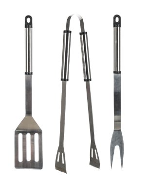 Náradie grilovacie BBQ, nerez, súprava 3diel. sada obsahuje 3 diely: - kliešte - obracačka - vidlička materiál: nerez oceľ Sada obsahuje základné náradie potrebné pri grilovaní.
