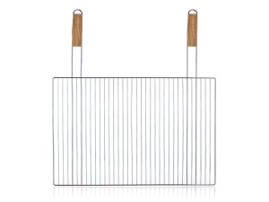 Rošt grilovací BBQ 60 x 40 cm. rozmery: 60 x 40 cm materiál: oceľ, drevo Hranatý grilovací rošt BBQ s drevenými rukoväťami využijete pre ľahké grilovanie mäsa, zeleniny a pod.