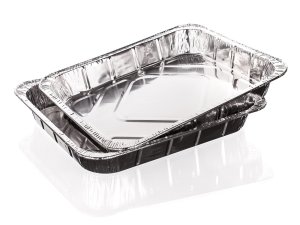 Zosilnené hliníkové grilovacie tácky s vyšším okrajom.