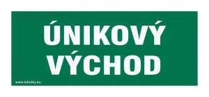 Tabuľka - ÚNIKOVÝ VÝCHOD 210 x 87 mm, samolepiaci. rozmery: 210 x 87 mm Samolepiaca bezpečnostná tabuľka, ktorej účelom je opatrenie a zníženie rizík.