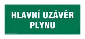 Tabuľka - HLAVNÝ UZÁVER PLYNU 210 x 87 mm, samolepiaci. rozmery: 210 x 87 mm Samolepiaca bezpečnostná tabuľka, ktorej účelom je opatrenie a zníženie rizík.
