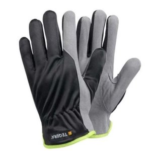 Ochranné pracovné rukavice z hovädzej štiepenky, chrbát z hrubej bavlnenej tkaniny, tuhá manžeta, podšívka v dlani.