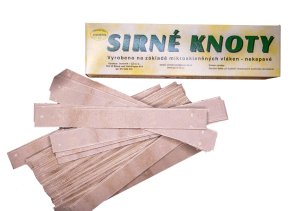 Popis a použitie: Sírne knôty sú určené na sírenie výrobných a skladových nádob (sudy, demižóny atď.), včelích plástov a menších skladovacích priestorov, pivníc atď.