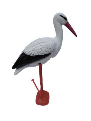 Vierohodne spracovaná záhradná dekorácia v podobe bociana.