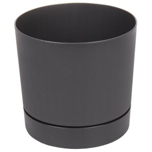 Okrúhly čierny plastový kontajner na pestovanie rastlín. Pevná kvalita.