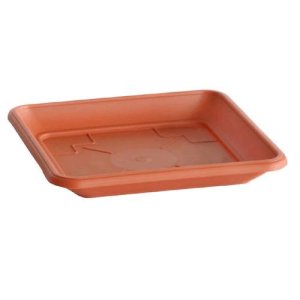 Štvorcová miska, ktorá je nevyhnutným príslušenstvom ku kvetináčom toho istého tvaru.
