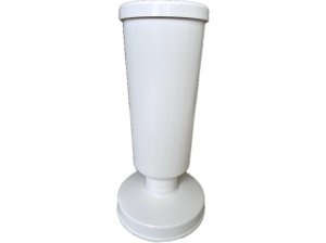 Plastová biela lesklá cintorínska váza s guľatou ťažkou základňou.