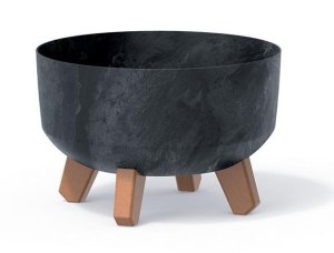 Plastová, samozavlažovacia žardinka na krátkych nôžkach v imitácii dreva.