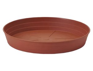 Plastová okrúhla podmiska. Používa sa pod kvetináče s rastlinami v rovnakom dizajne av rovnakej farbe.