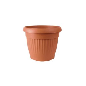 Plastový ľahčený matný črepník s vylisovanými zvislými pruhmi takmer po celej výške.
