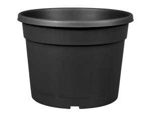 Okrúhly čierny plastový kontajner na pestovanie rastlín. Pevná kvalita.