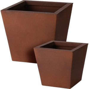 - sada 2 kvetináčov, ktoré možno umiestniť v exteriéri aj interiéri - vyrobené z kovu - dizajnový hrdzavý povrch - sada obsahuje 4 kvetináče v rôznych veľkostiach: - 20 x 20 cm - 15 x 15 cm