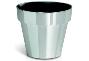 Plastový dizajnový obal na kvetináč s vnútornou vyberateľnou nádobou.