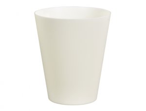 Vysoký kónický plastový obal so širokým horným okrajom.