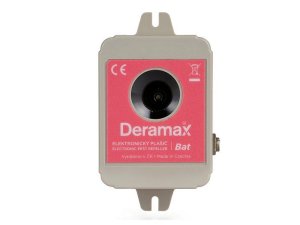 Odpudzovač Deramax netopierov, typ plašiča: utrazvukový (úplne bezhlučný), automatická zmena kmitočtu i výkonu, dosah až 18 metrov v uhle 180 stupňov, vplyv na človeka: žiadny
