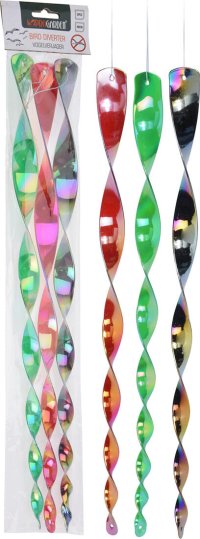 Plašič vtákov TWISTER reflexný, 48 x 3 cm, PH (3 ks). rozmery: 48 x 3 cm materiál: plast mix farieb zelená, červená, čierna hmotnosť: 63 g balenie: 3 ks Reflexný plašič vtákov.