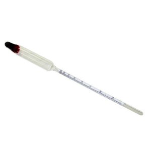 Alkoholmeter 0 - 95%. Alkoholmeter sa skladá zo skúmavky a plaváka so stupnicou od 0 do 95% objemu alkoholu.