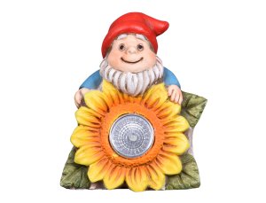 Solárna lampa v podobe trpaslíka so slnečnicou.