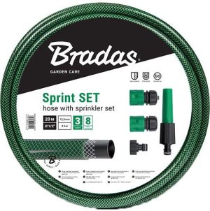 príslušenstvo: klasická nastaviteľná tryska, rýchlospojka stôp a štandardná, adaptér na kohútik Vystužená záhradná hadica SPRINT 1/2" z mäkčeného PVC, ktorá sa skladá z 3 vrstiev s príslušenstvom.