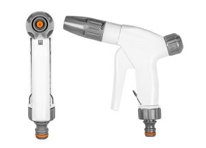 Pištoľ s reguláciou prietoku. Umožňuje zmeniť prúd postreku z priameho na rozptýlený.