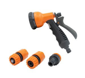 príslušenstvo: 1/2“ rýchlospojka STOP, 1/2“ rýchlospojka, 1/2" + 3/4" adaptér materiál: plast Set plastovej pištole s 8 funkciami a príslušenstvom AQUA je ideálnym doplnkom záhradnej hadice.