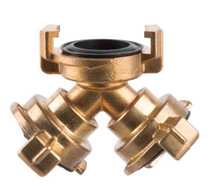 Mosadzná rozvodka na spojky GEKA vhodná na prenos vody a neagresívnych kvapalín.