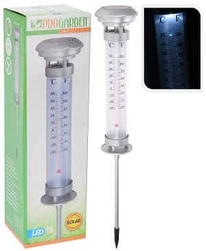 - solárne vonkajšie LED lampa- studené biele svetlo- funkčný teplomer - hrot pre umiestnenie do pôdy- celková výška: 58 cm- priemer: 9 cm
