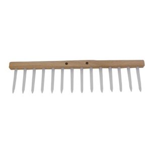 dĺžka: 48 cm materiál: drevo, plast 14 kolíkov bez násady Záhradné drevené hrable "hrebene" s kolíkmi sú vhodné predovšetkým pre zhrabovanie sena, ale aj hrubšieho smetia alebo opadaného lístia.