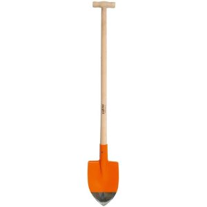Rýľ na hĺbenie úzkych výkopov dlhý 52 cm s drevenou T násadou.