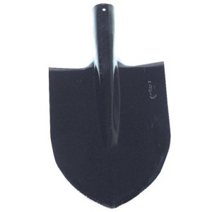 Čierny lakovaný rýľ s oblou hranou bez násady.