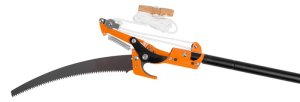 Húsenica nožnice s rohatkou a pílkou a teleskopickou tyčou dĺžky až 280 cm.