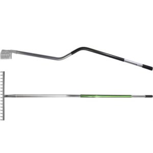 Kvalitné kovové hrable so 16-tich zuby a drevenou násadou dlhú 160 cm.