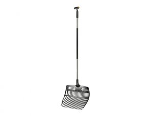 Veľké plastové hrable určené na zhrabovanie sena, lístia a ľahkých záhradných zvyškov.