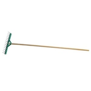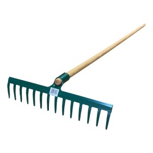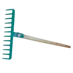 Celokovové švédske hrable s násadou na hrabanie lístia alebo trávy.