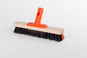 Drevená metla s tyčou Chlp 12 cm Štetiny z PET fliaš - 0,80 mm, eko Drevo - bukové teleso Borovicová/ smreková palica 120 cm Celková výška 120x 32 cm
