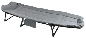 Polohovacie lehátko 200 x 65 cm, výška 30 cm, skladacia, nosnosť 120 kg, vrecko, vankúš, rozmery v zloženom stave 65 x 85 x 20 cm.