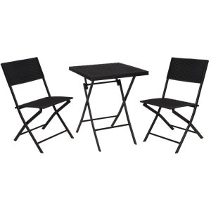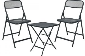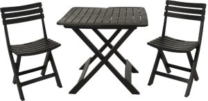- záhradný nábytok či balkónový set v antracitovej farbe- skladací stolík a 2 skladacie stoličky môžete umiestniť na záhrade, chate alebo aj na terase a balkóne- nábytok možno používať vonku aj vo vnútri- ľahký a skladný- …