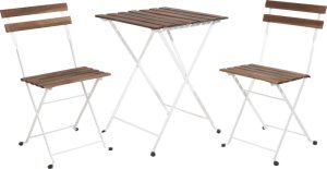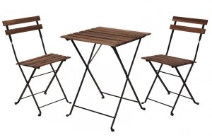 3dielna bistro sada skladajúca sa z 2 stoličiek a stolumateriál: agátové drevofarba: teakový Úspora miesta: stoličky aj stôl sú skladacie2x bistro stoličky: 53 x 40 x V82 cm1x bistro stôl: 65 x 65 x V73 cmhmot