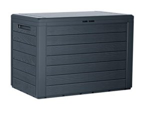 Záhradný box Keter s objemom 270 l, kolieska a nízka hmotnosť boxu pre ľahké premiestňovanie, vzhľad hodiaci sa takmer do každej záhrady či domova, odolný voči UV žiareniu, farba grafitová.
