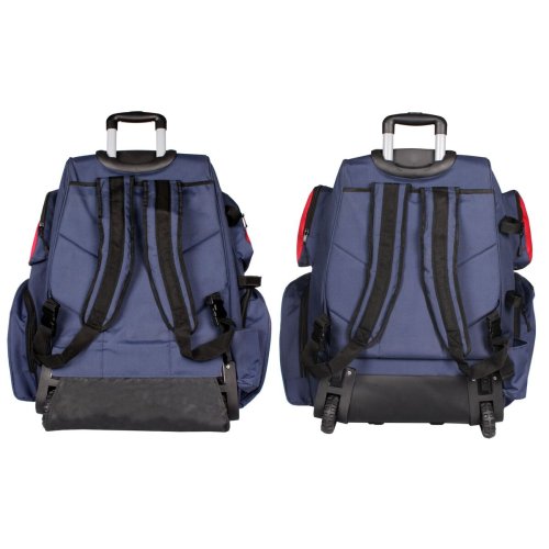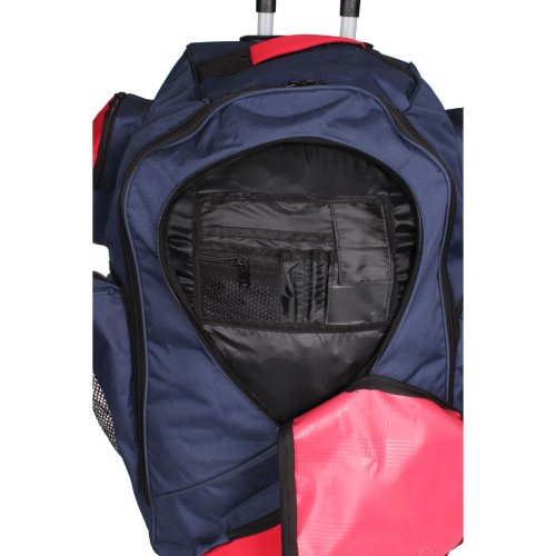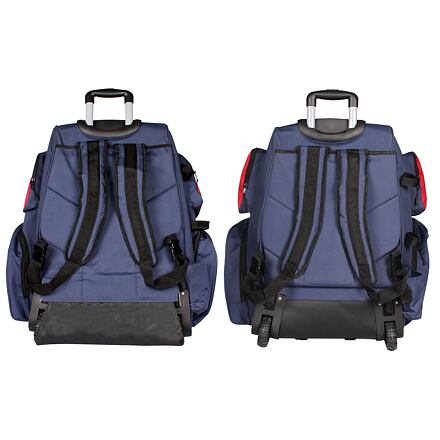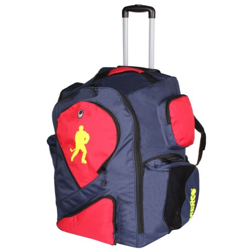 Merco Hockey League je praktický hokejový bag na kolieskach pre seniorských hráčov všetkých výkonnostných úrovní. Či už s hokejom začínate alebo jazdíte pravidelne po tréningoch a zápasoch a hľadáte priestrannú tašku pre pohodlné prevážanie kompletnej výstroje, je Hockey League to pravé. Komfortné cestovanie je zaistené dvoma spôsobmi. Buď tašku môžete nosiť na chrbte ako klasický batoh, alebo ju ľahko preveziete pomocou dvoch koliesok a výsuvného madla. Taška je vyrobená z odolného polyesteru, jej celkové rozmery sú približne 70 x 45 x 42 cm a hmotnosť cca 4,4 kg. Táto taška / batoh na hokej ponúka jeden hlavný úložný priestor, dve predné vrecká, dve horné menšie vrecká, dve bočné vrecká s odvetrávaním, uchytenie na suchý zips pre hokejku, vystužené dno a chrbát, nastaviteľné popruhy na chrbát, kolieska s priemerom 10 cm a výsuvné madlo. - hokejová taška / batoh pre seniorských hráčov - rozmery: 70 x 45 x 42 cm - hmotnosť tašky: cca 4,4 kg - kolieska a výsuvné madlo - nastaviteľné popruhy na nosenie na chrbte - mnoho rozdelených vreciek pre kompletnú hokejovú výstroj